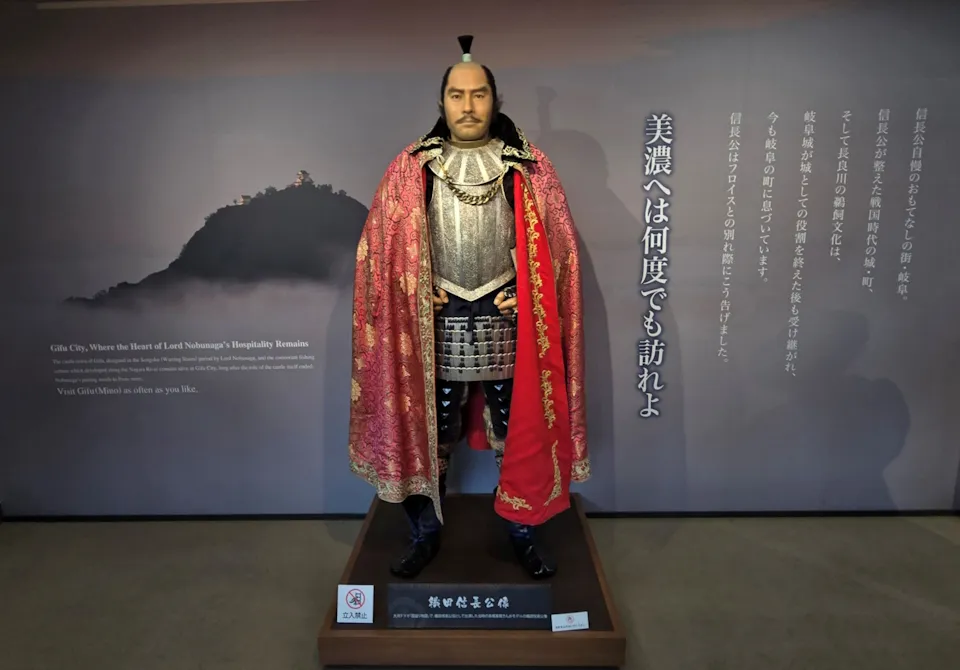 織田信長の木像と金の像 高橋英樹さんの信長像 本木雅弘さんの斎藤道三像